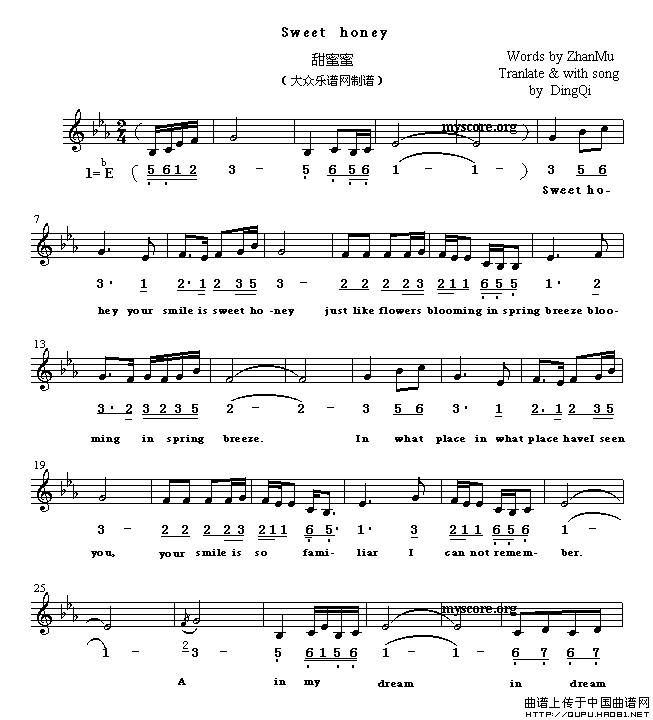 Sweet honey(甜蜜蜜)(英译中文歌曲、线简谱混排版)