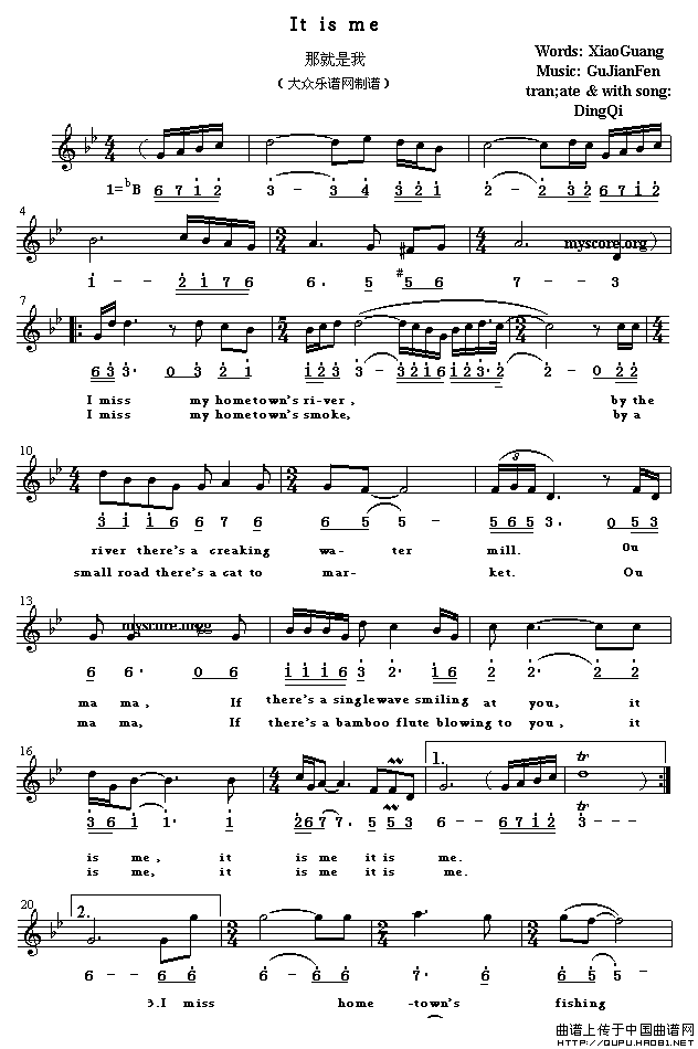 It is me(那就是我)(英译中文歌曲、线简谱混排版)