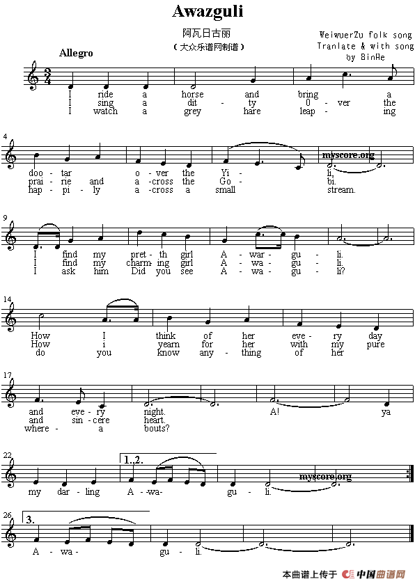 格式:五线谱 来源:《大众乐谱网》制谱上传 上传:秋叶起舞