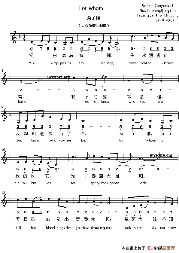 格式:简线混排 来源:《大众乐谱网》制谱上传 上传:秋叶起舞