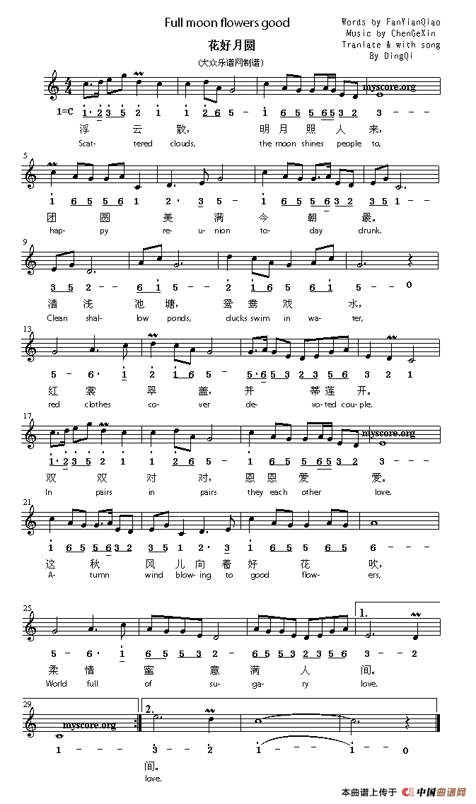 Full moon flowers good(花好月圆) (英译中文歌曲、线简谱混排版)