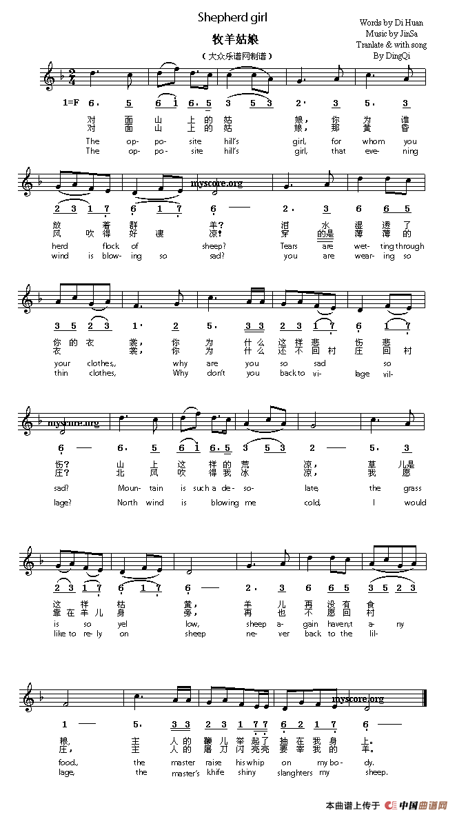 Shepherd girl(牧羊姑娘) (英译中文歌曲、线简谱混排版)