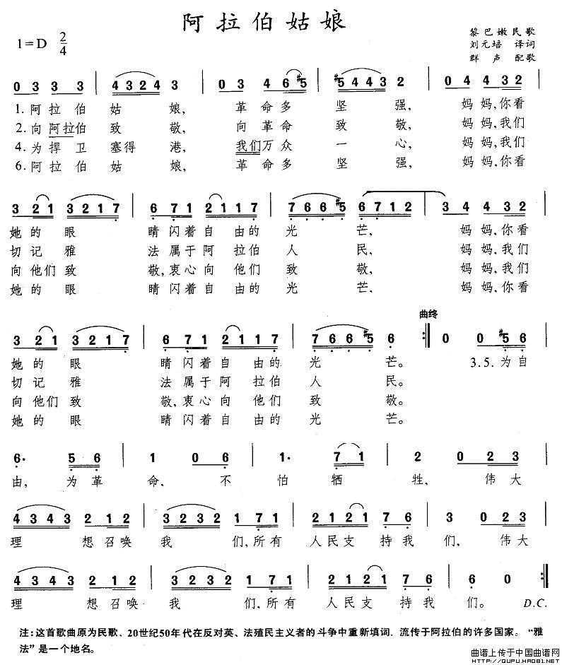 关于《[黎巴嫩]阿拉伯姑娘》曲谱的评论