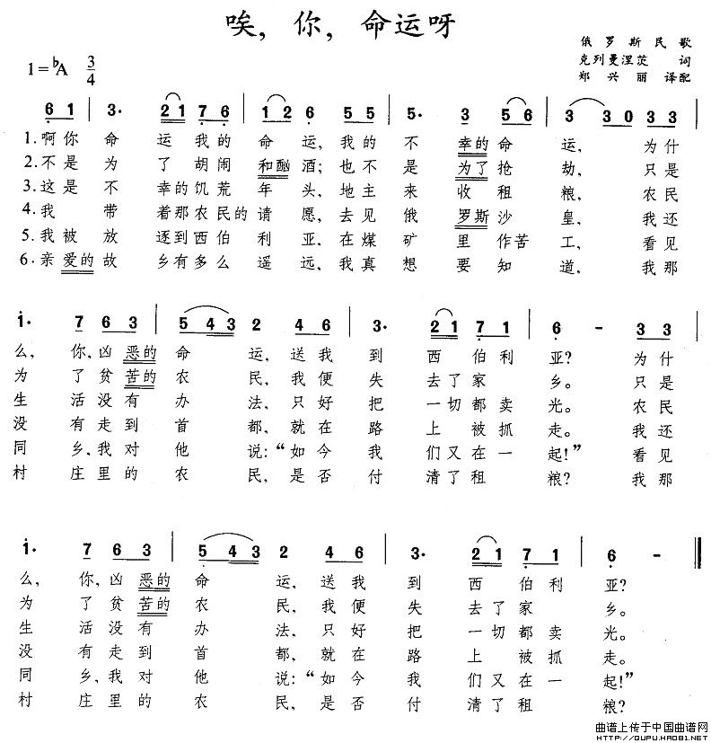 关于《唉,你,命运呀》曲谱的评论