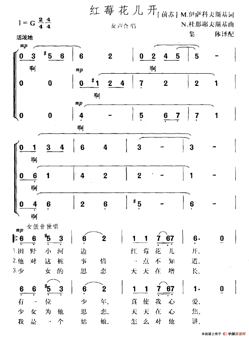 关于《[前苏联] 红莓花儿开》曲谱的评论