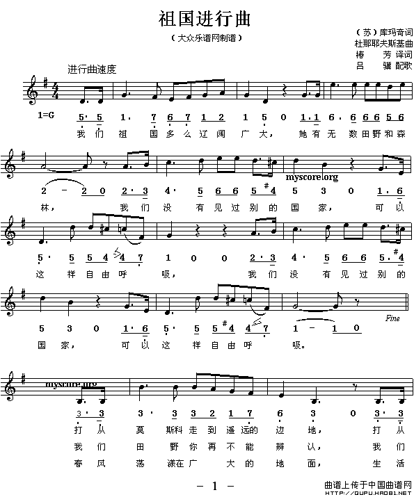 [前苏联] 祖国进行曲(线、简谱混排版 )