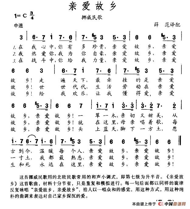 关于《[挪威] 亲爱的故乡》曲谱的评论