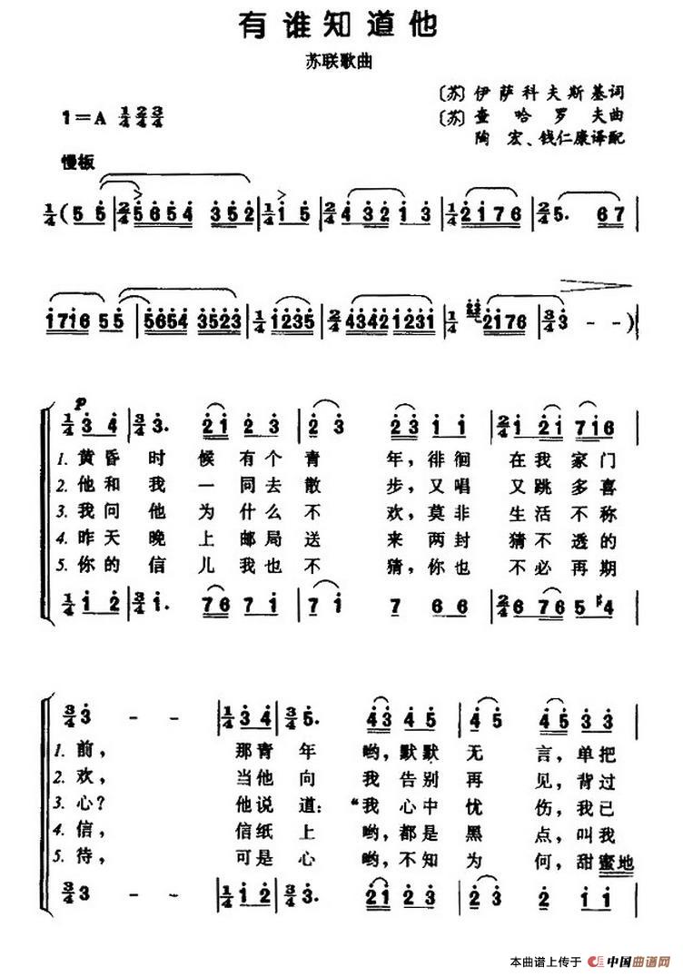 关于《[前苏联] 有谁知道他》曲谱的评论