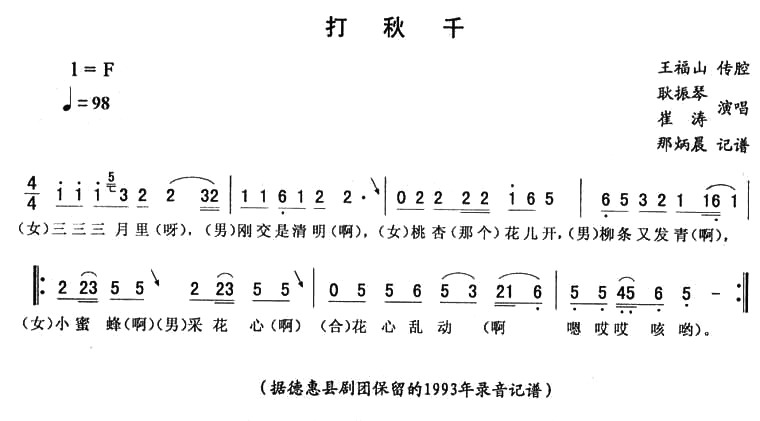 关于《打秋千》曲谱的评论
