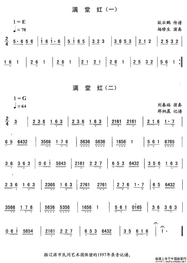 满堂红—东北秧歌曲牌(二人转伴奏谱)