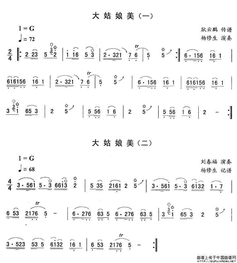 大姑娘美—东北秧歌曲牌(二人转伴奏谱)