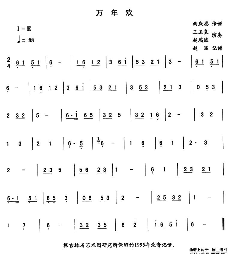 关于《万年欢—东北秧歌曲牌》曲谱的评论