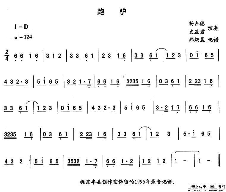 关于《跑驴—东北秧歌曲牌》曲谱的评论