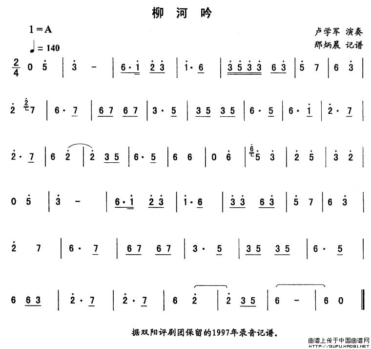 关于《柳河吟—东北秧歌曲牌》曲谱的评论