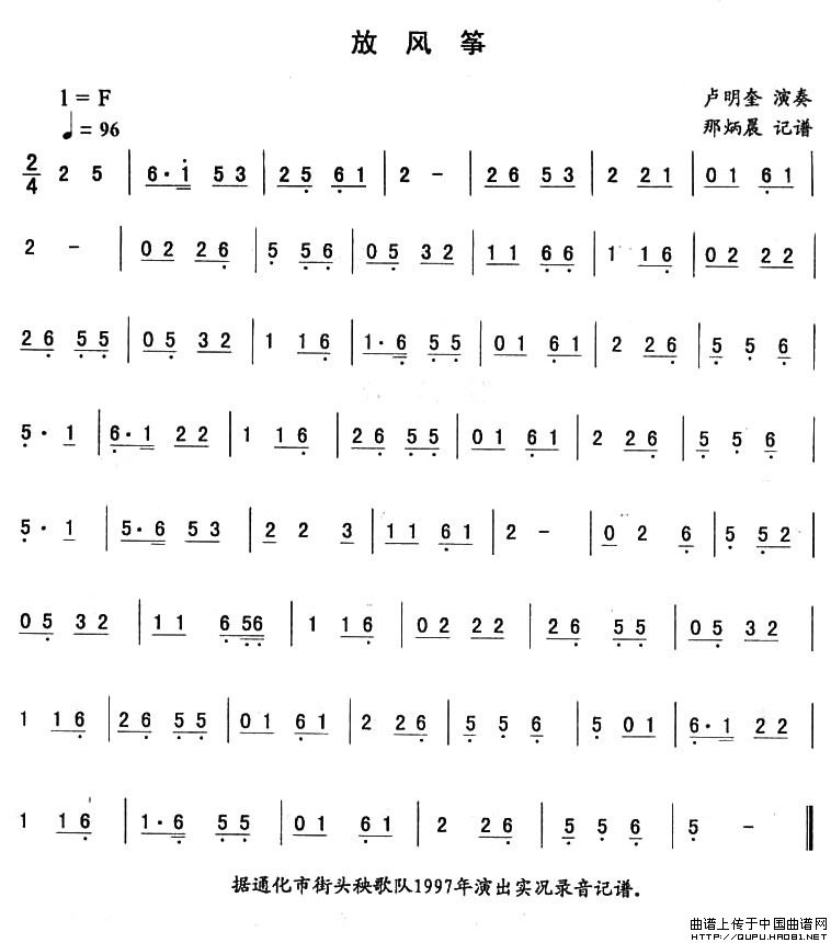 关于《放风筝—东北秧歌曲牌》曲谱的评论