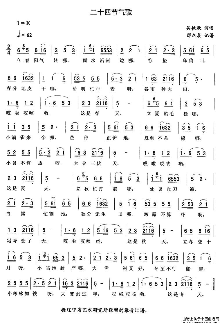关于《二十四节气歌》曲谱的评论