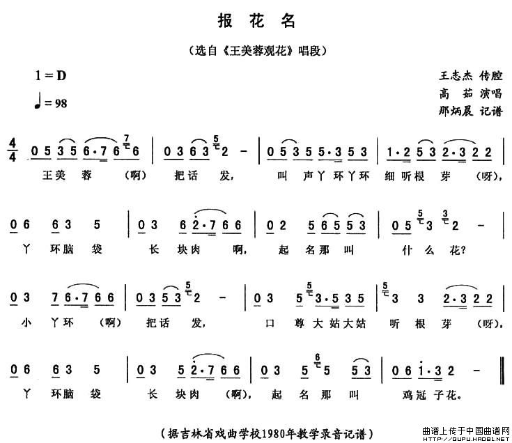 我想找黄梅戏金钗记-报花名的曲谱, 谢谢! [回复]
