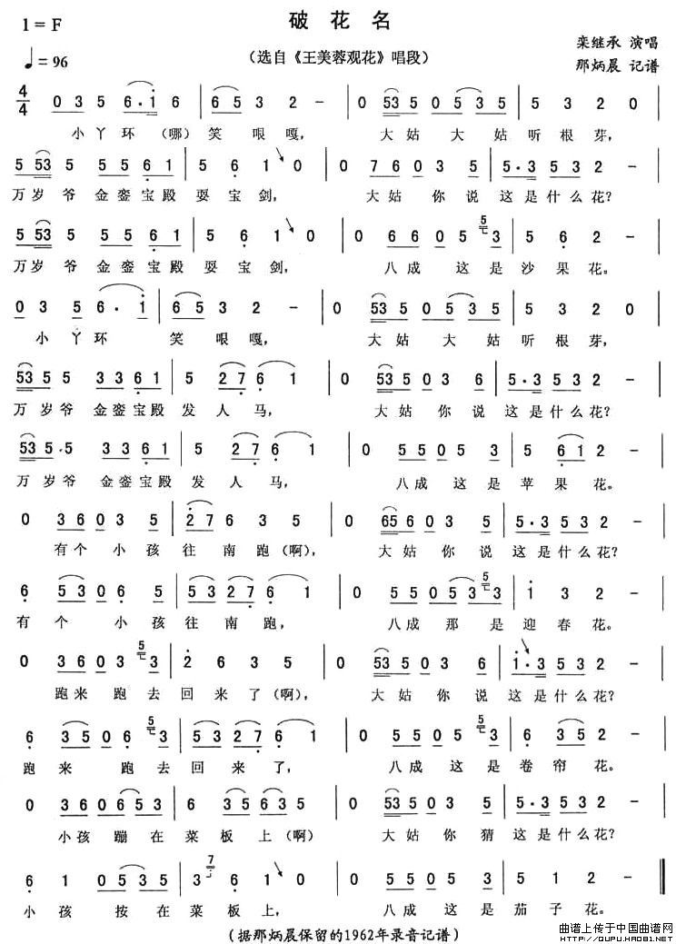 破花名(《王美蓉观花》唱段)