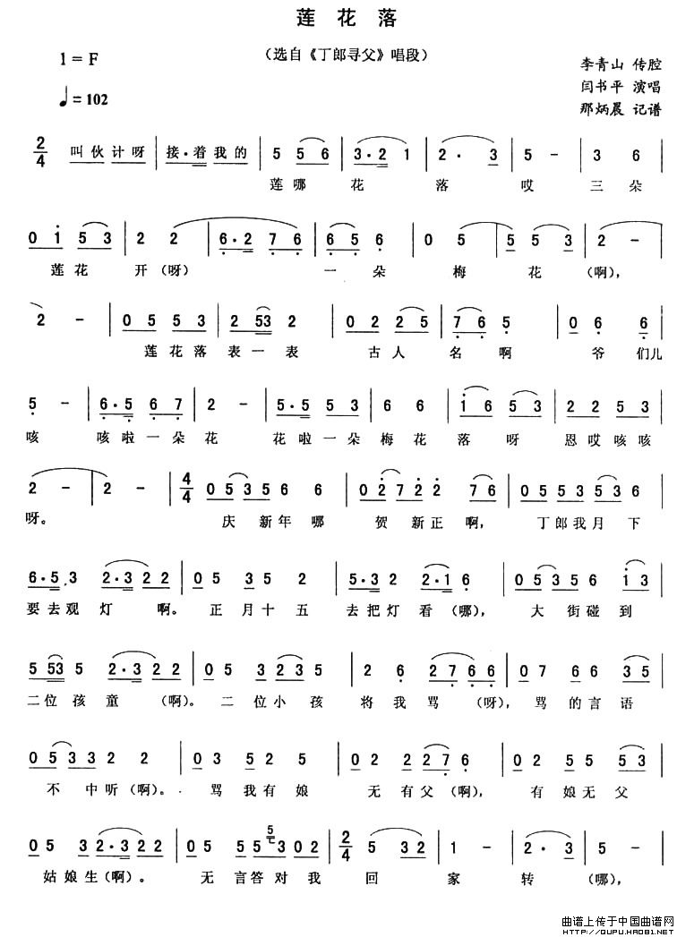 关于《莲花落》曲谱的评论