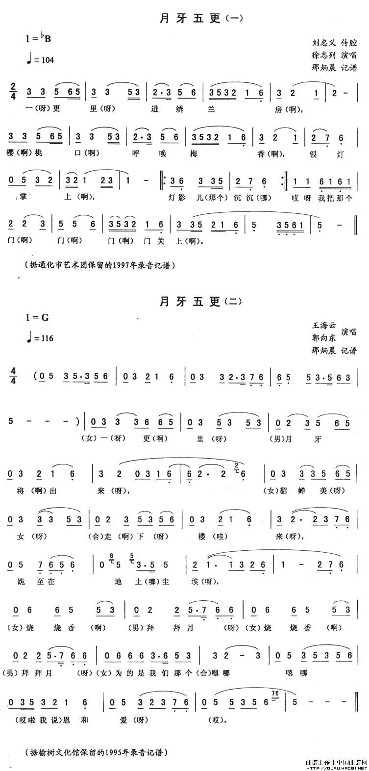 关于《月牙五更》曲谱的评论