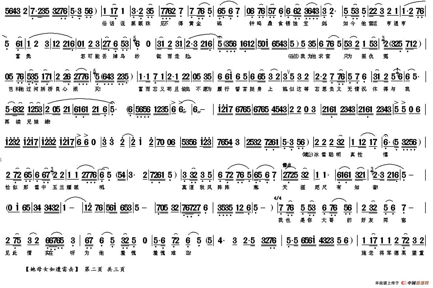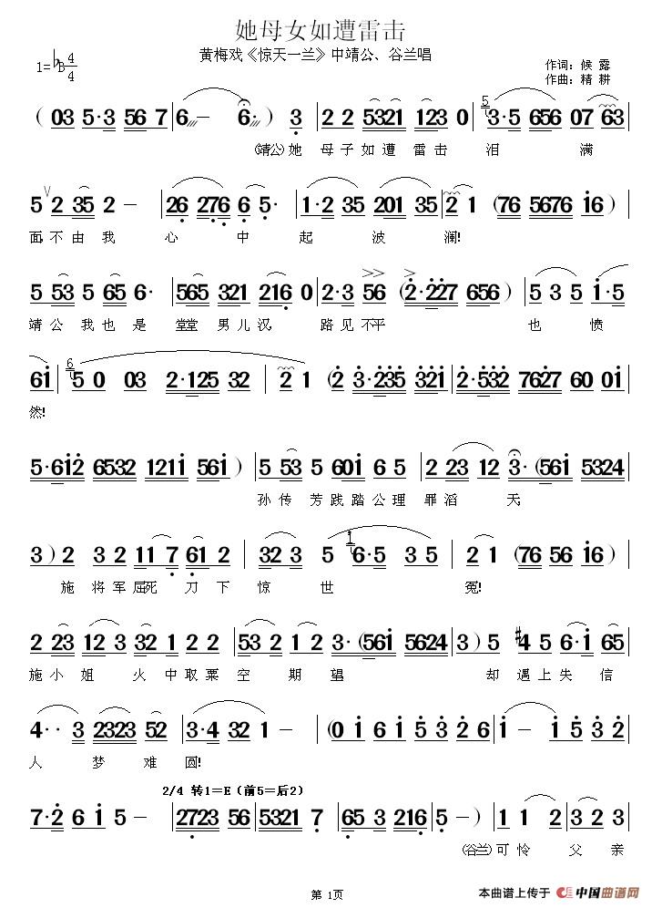 关于《她母女如遭雷击》曲谱的评论