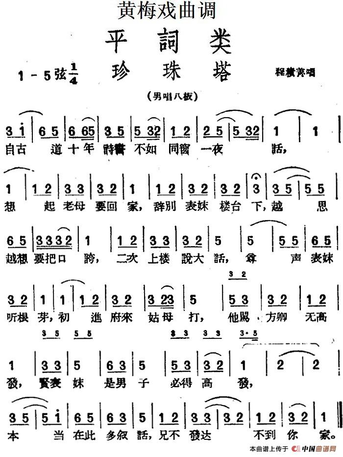 关于《[黄梅戏曲调]平词类:珍珠塔》曲谱的评论