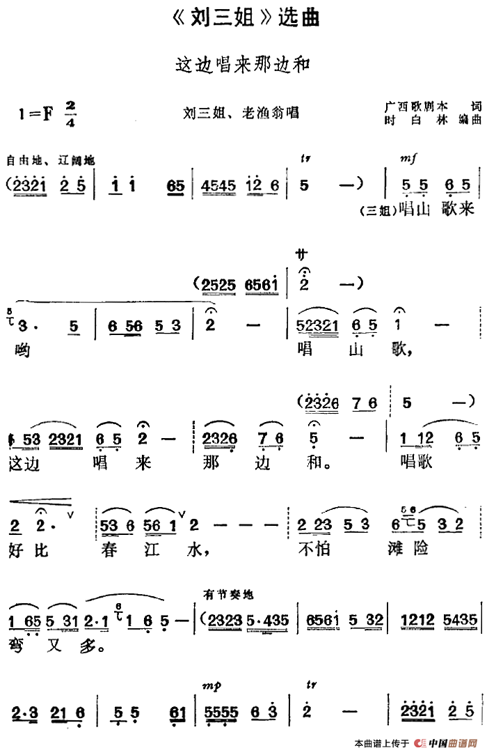 关于《《刘三姐》选曲:这边唱来那边和》曲谱的评论