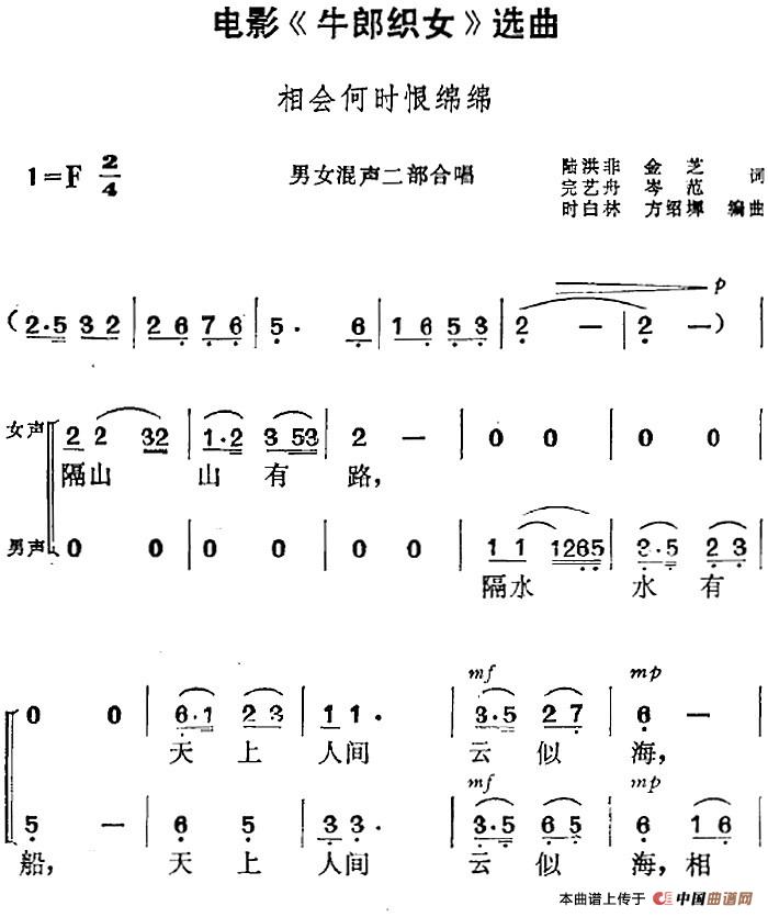 电影《牛郎织女》选曲:相会何时恨绵绵(男女混声二部合唱)
