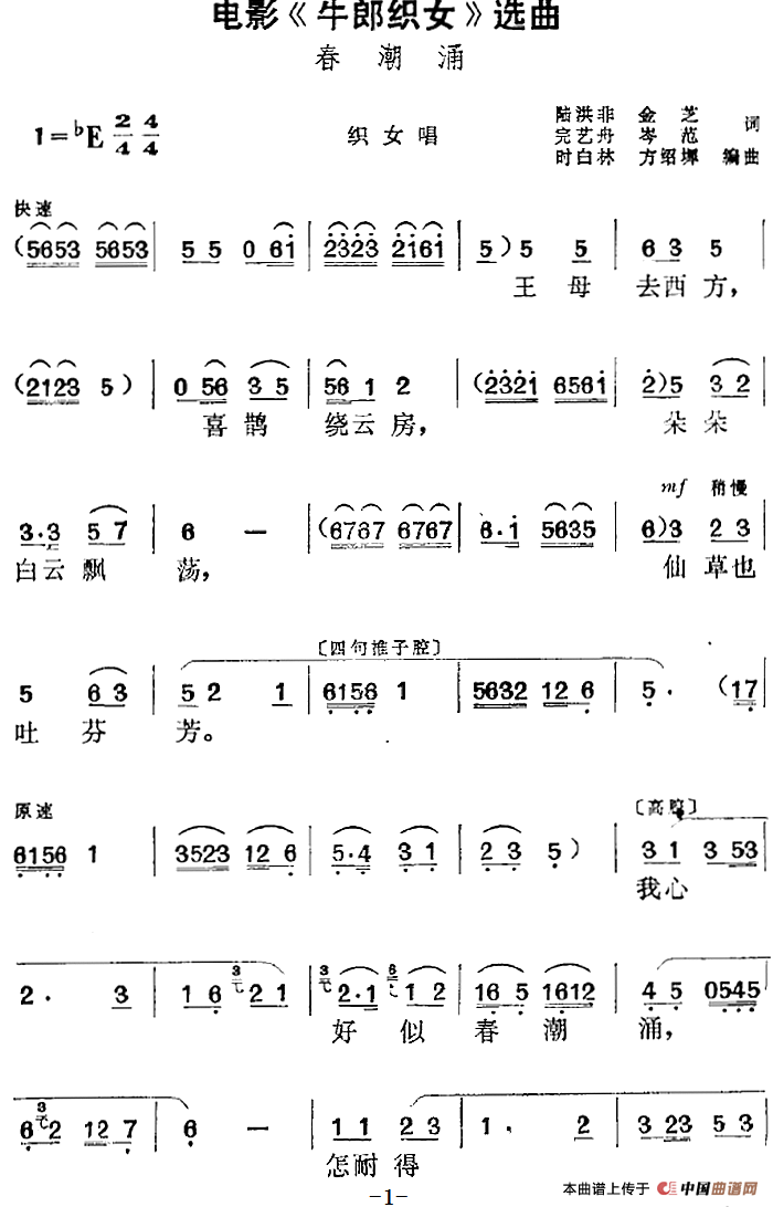 关于《电影《牛郎织女》选曲:春潮涌》曲谱的评论