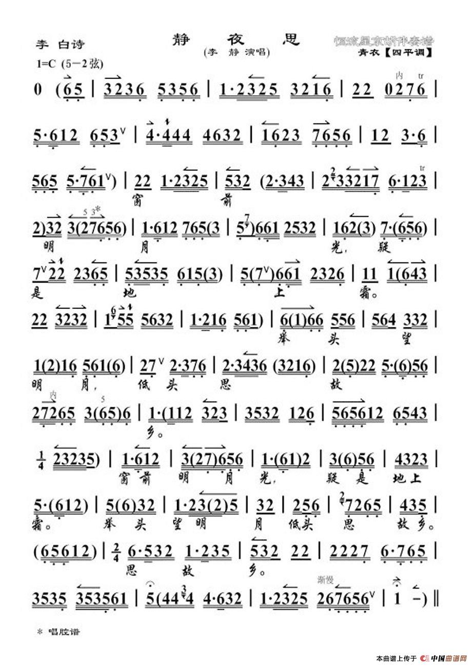 关于《静夜思》曲谱的评论
