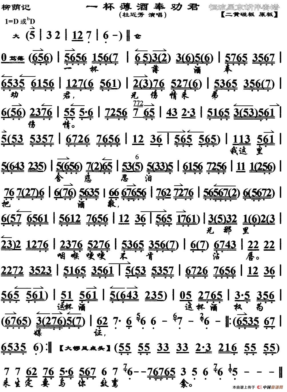 一杯薄酒奉劝君 (《柳荫记》选段、琴谱)