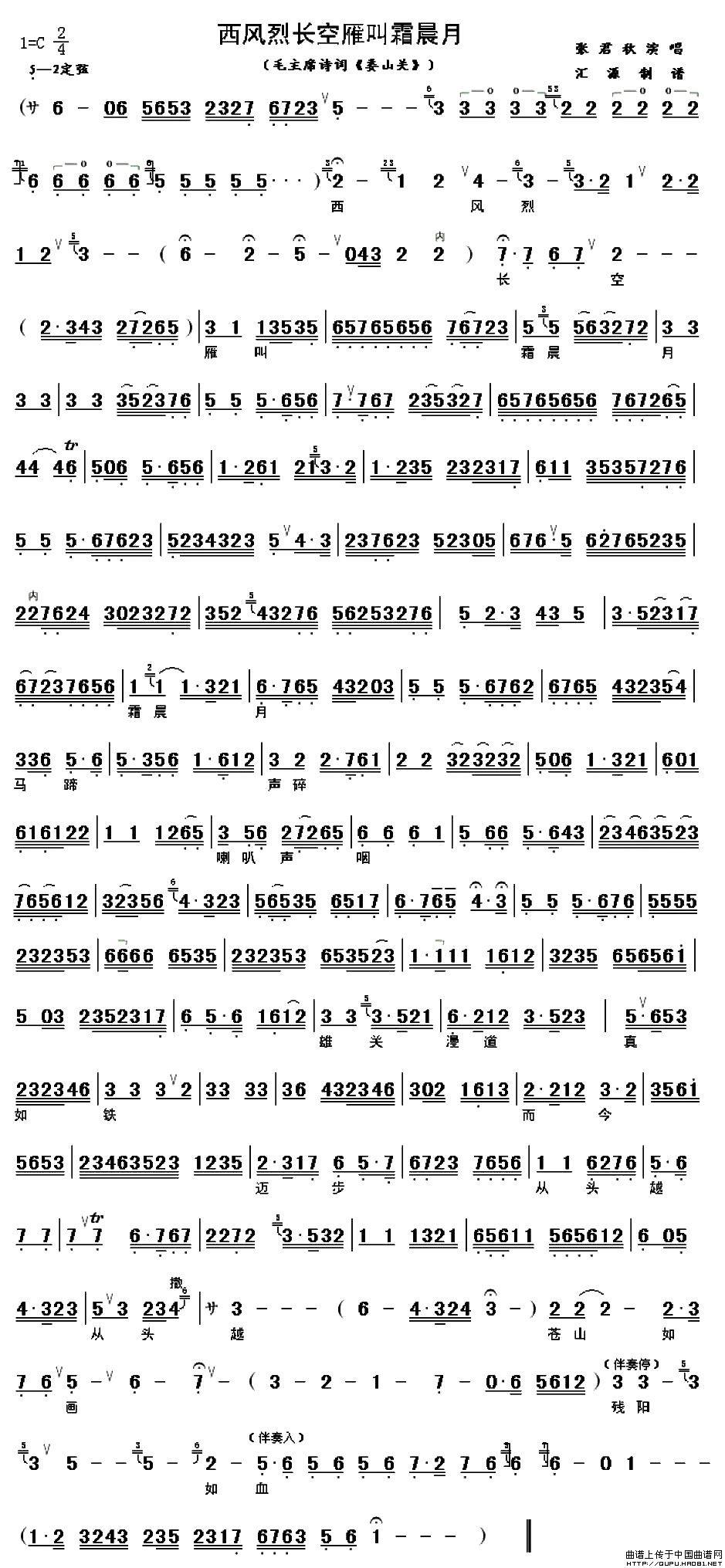 关于《西风烈长空雁叫霜晨月》曲谱的评论