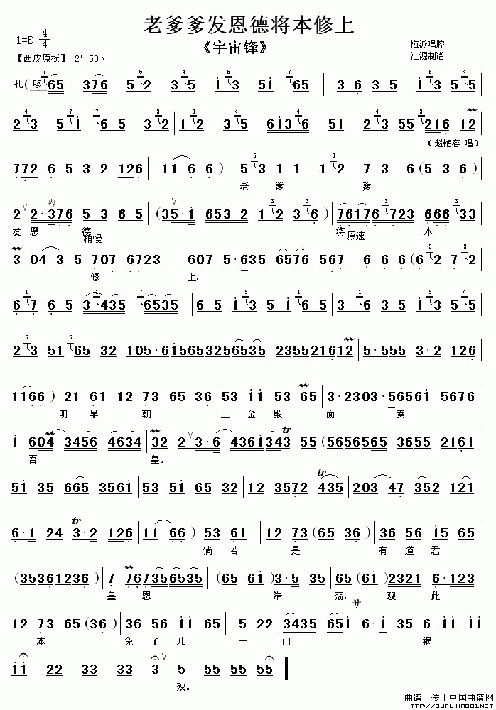 关于《老爹爹发恩德将本奏上》曲谱的评论
