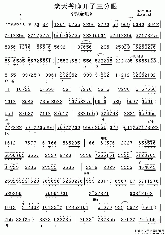 老天爷睁开了三分眼(《钓金龟》选段、伴奏谱)