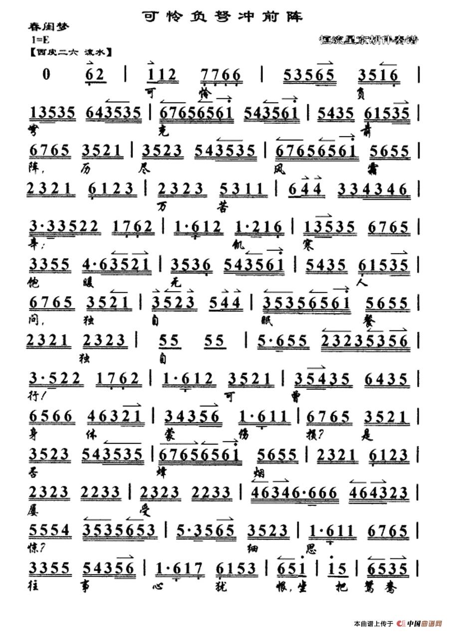 可怜负弩充前阵(《春闺梦》选段、伴奏谱)