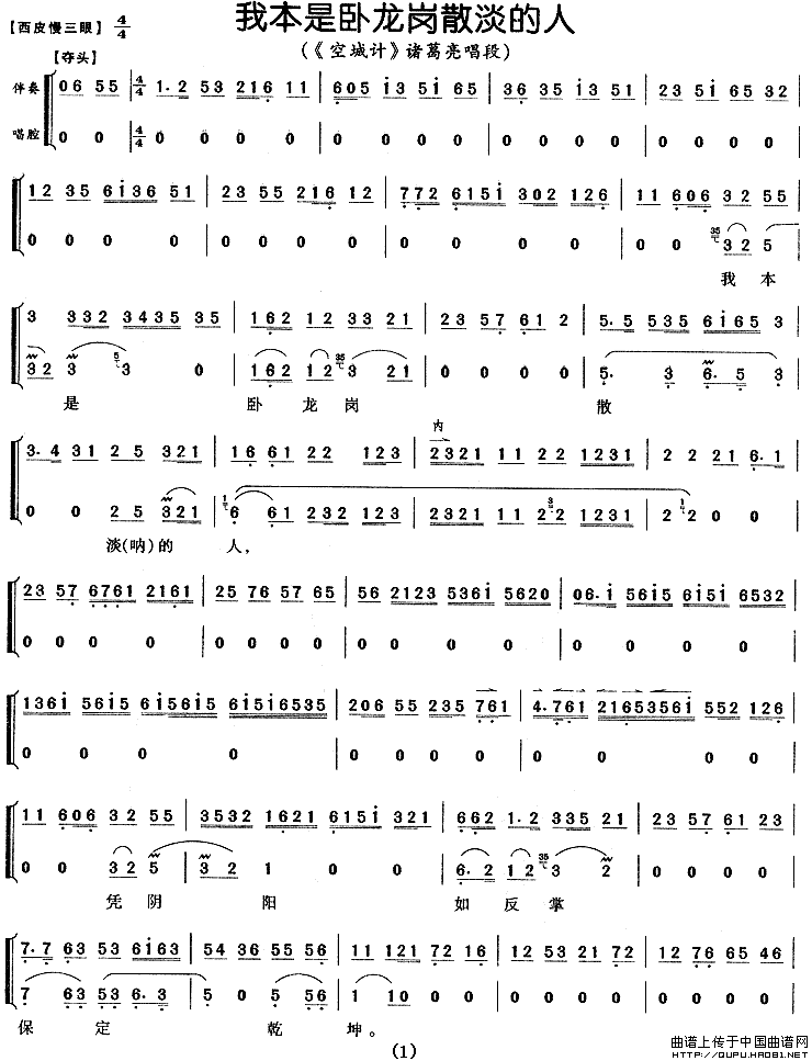 关于《我本是卧龙岗散淡的人》曲谱的评论