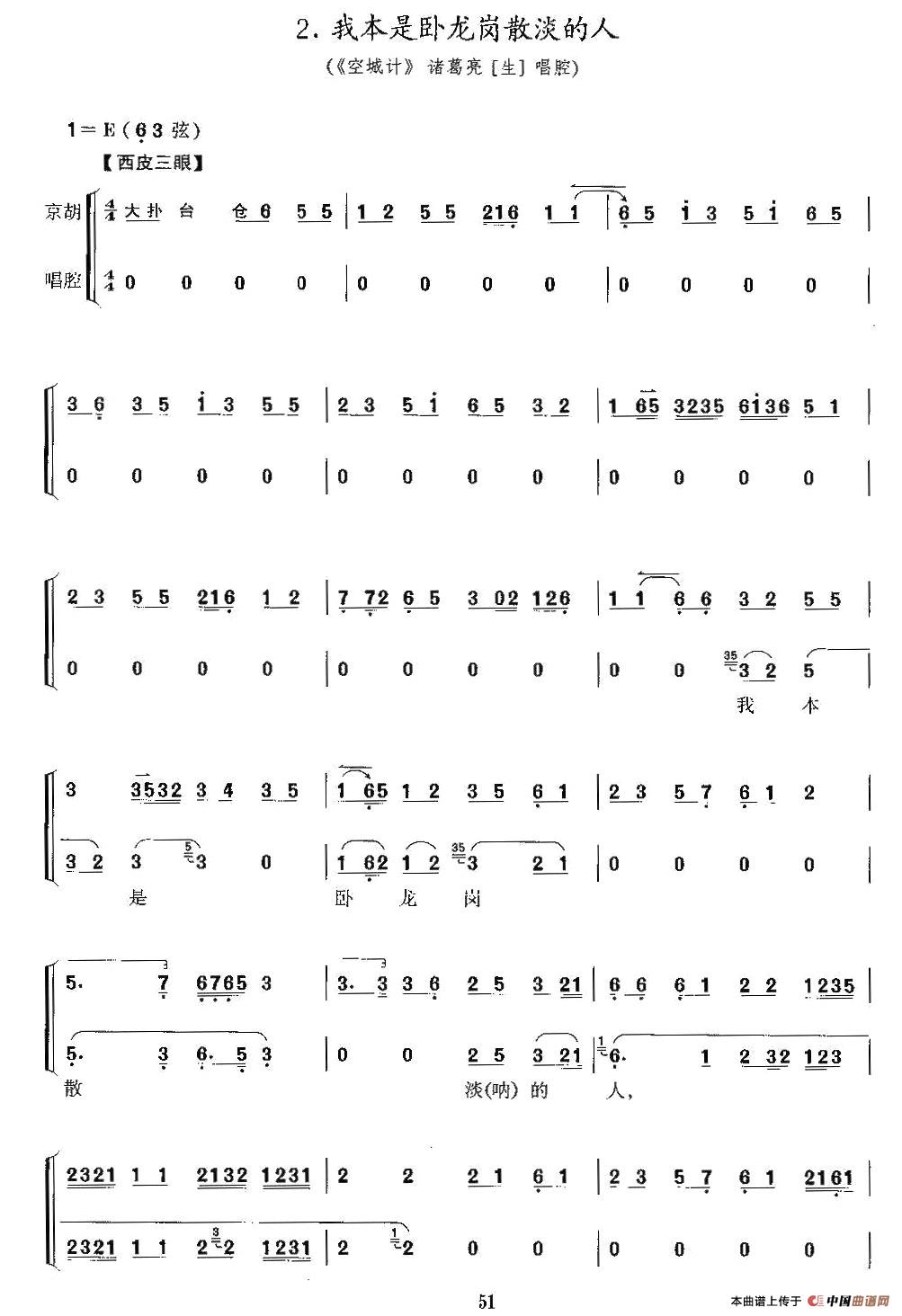 我本是卧龙岗散淡的人(《空城记》诸葛亮唱段、带伴奏谱)