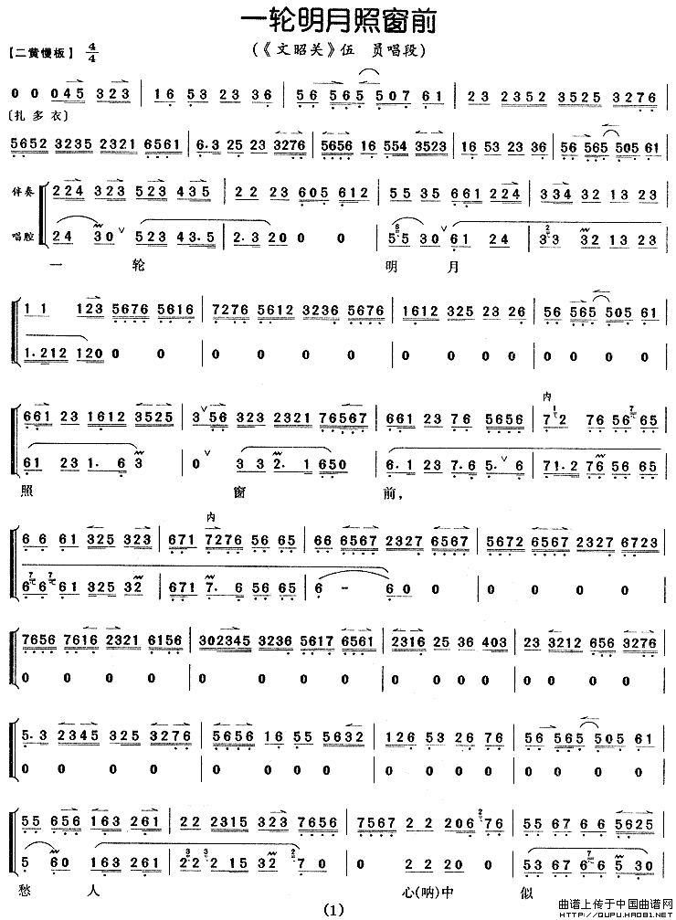 一轮明月照窗前(《文昭关》伍员唱段、伴奏+唱腔)