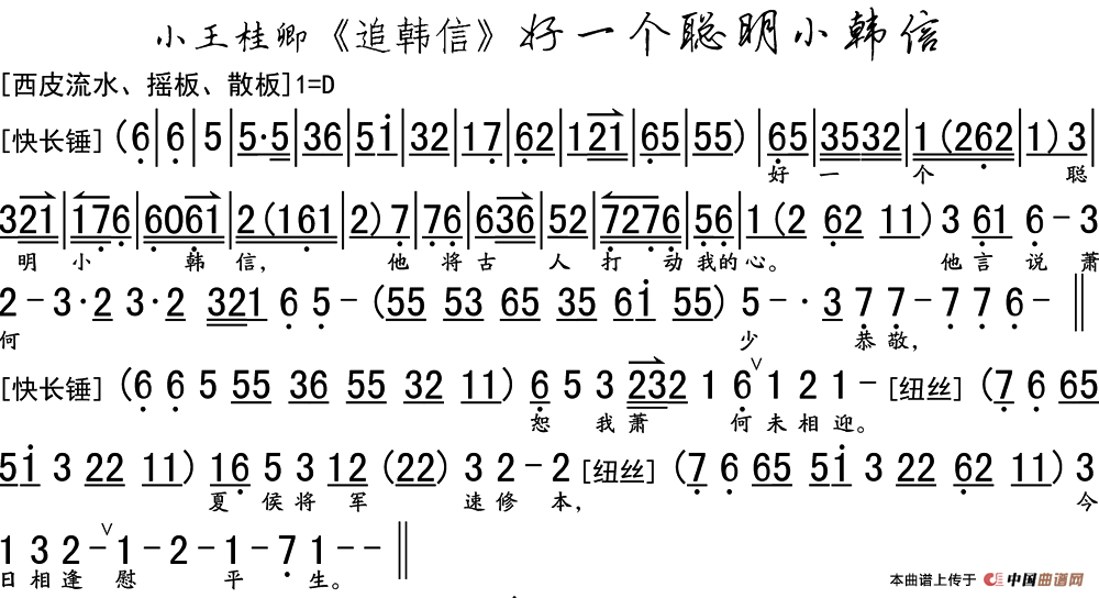 好一个聪明小韩信(《追韩信》选段、琴谱)