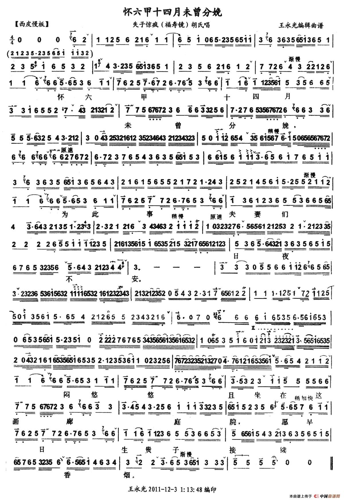 怀六甲十四月未曾分娩(《失子惊疯》胡氏唱段、琴谱)