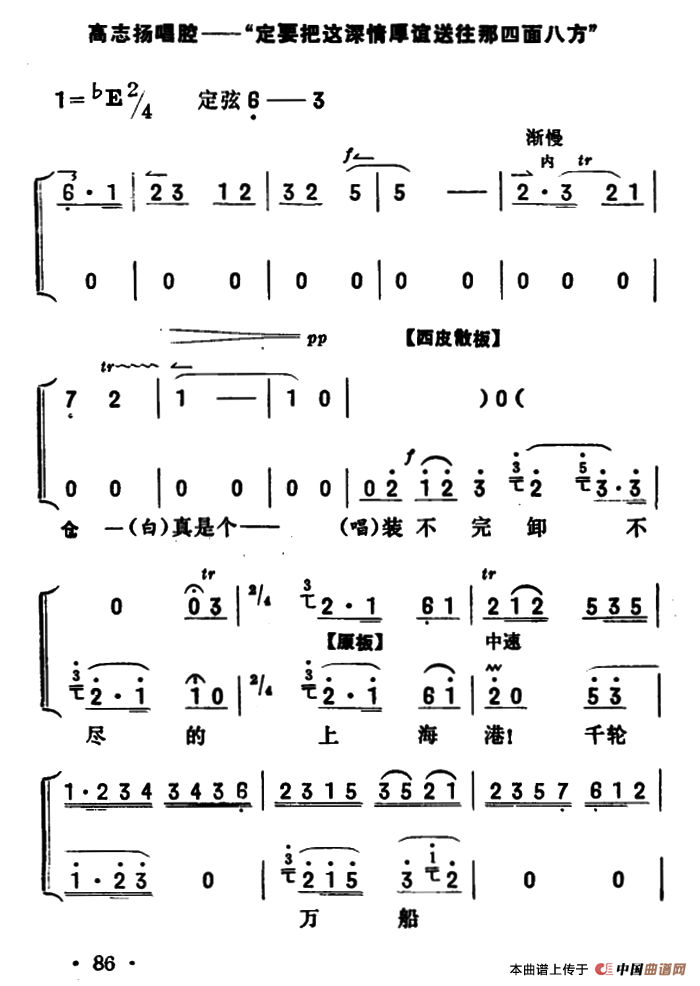 定要把这深情厚谊送往那四面八方(《海港》高志扬唱段)(京胡伴奏+唱腔)