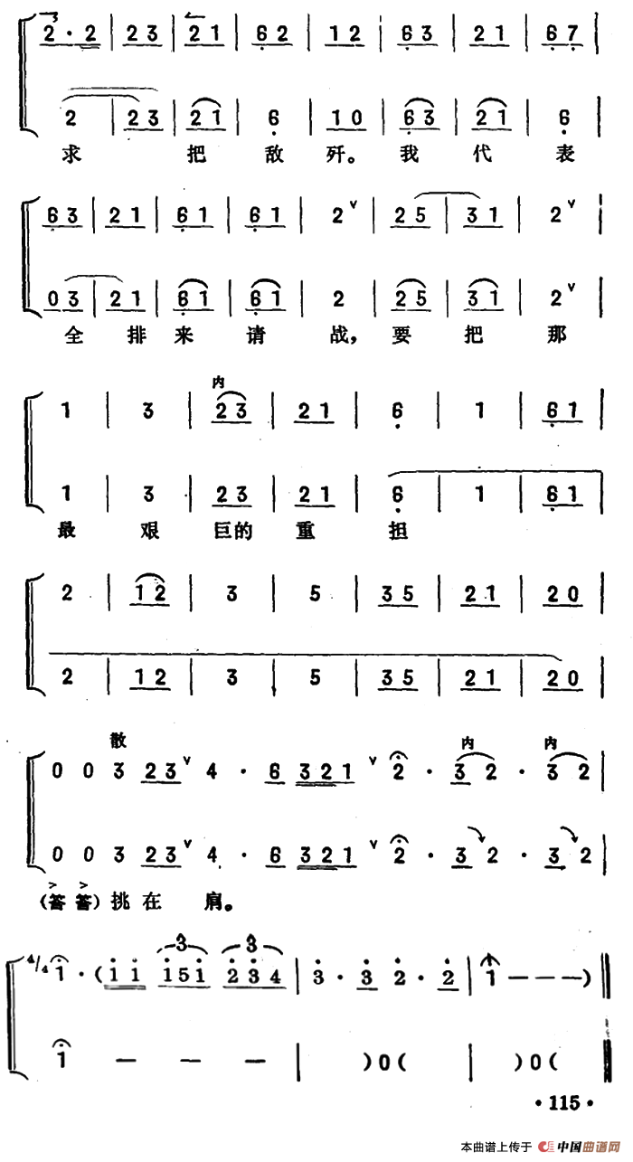 关于《为人类求解放碎骨也心甘(《奇袭白虎团》严伟才唱段)》曲谱的评论