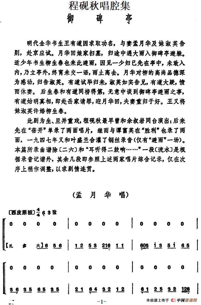 关于《程砚秋唱腔集:《御碑亭》》曲谱的评论