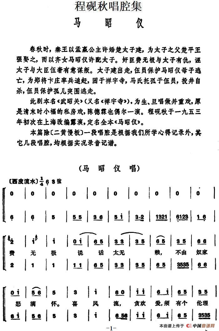 关于《程砚秋唱腔集:《马昭仪》》曲谱的评论