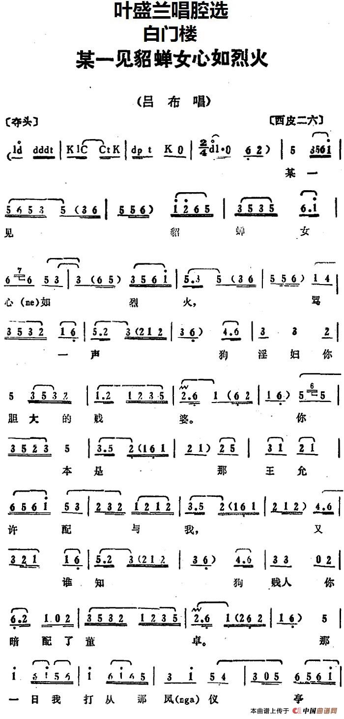 关于《叶盛兰唱腔选:某一见貂蝉女心如烈火》曲谱的评论