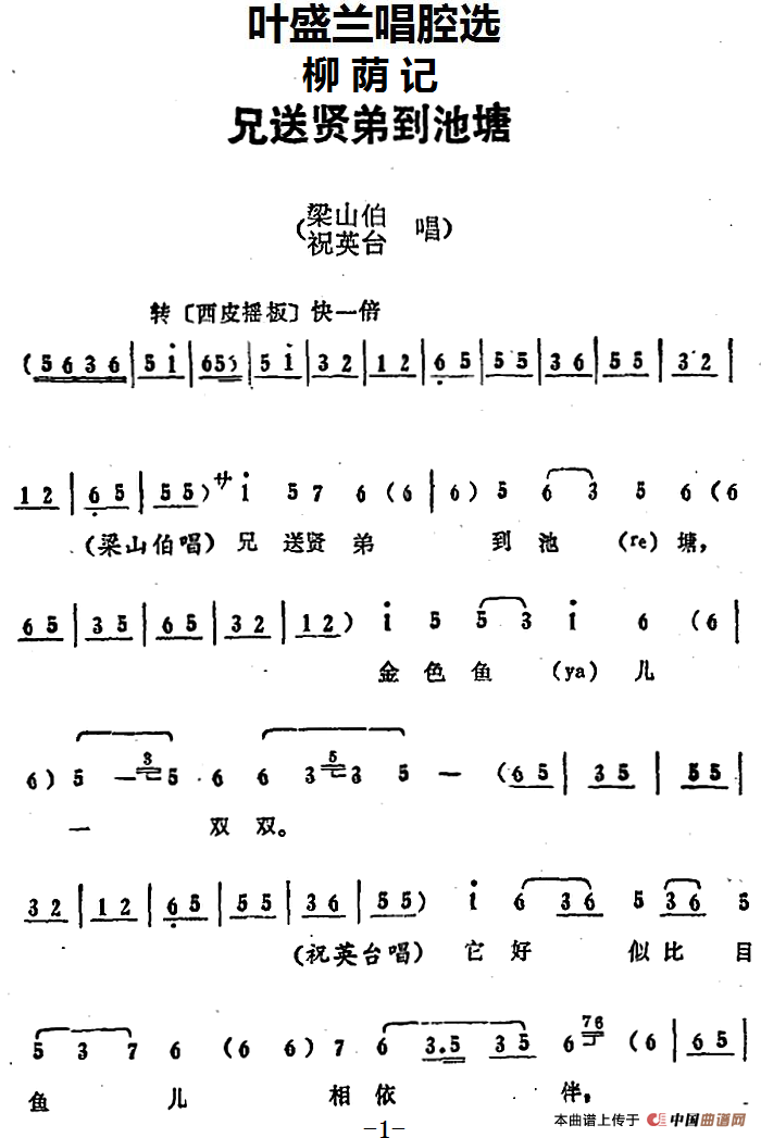 关于《叶盛兰唱腔选:兄送贤弟到池塘》曲谱的评论