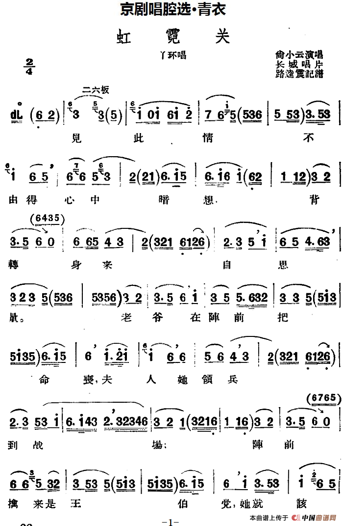 关于《京剧唱腔选·青衣:虹霓关》曲谱的评论