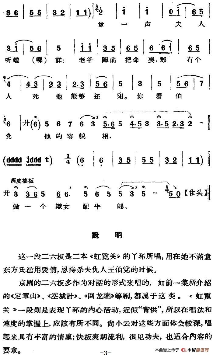 选自中国戏曲学院研究所编著《京剧唱腔 第二集·下编(青衣·老旦)》