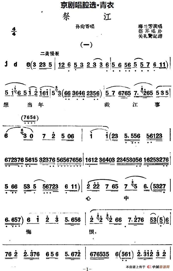 关于《京剧唱腔选·青衣:祭江》曲谱的评论