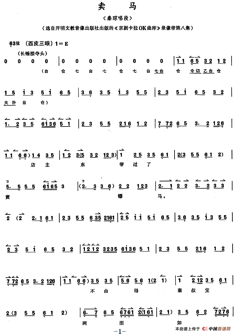 选自开明文教音像出版社出版的《京剧卡拉OK曲库》录像带第八集